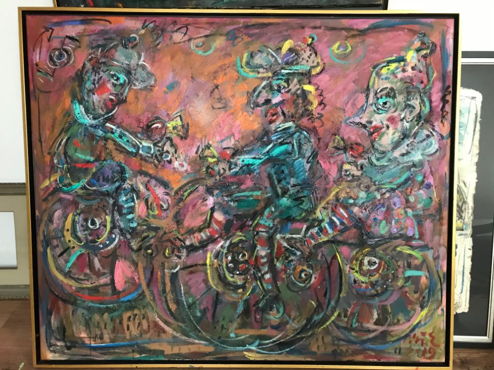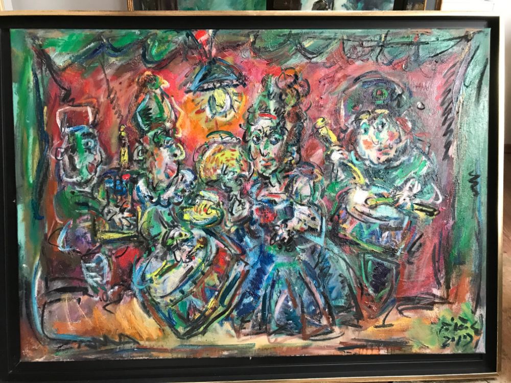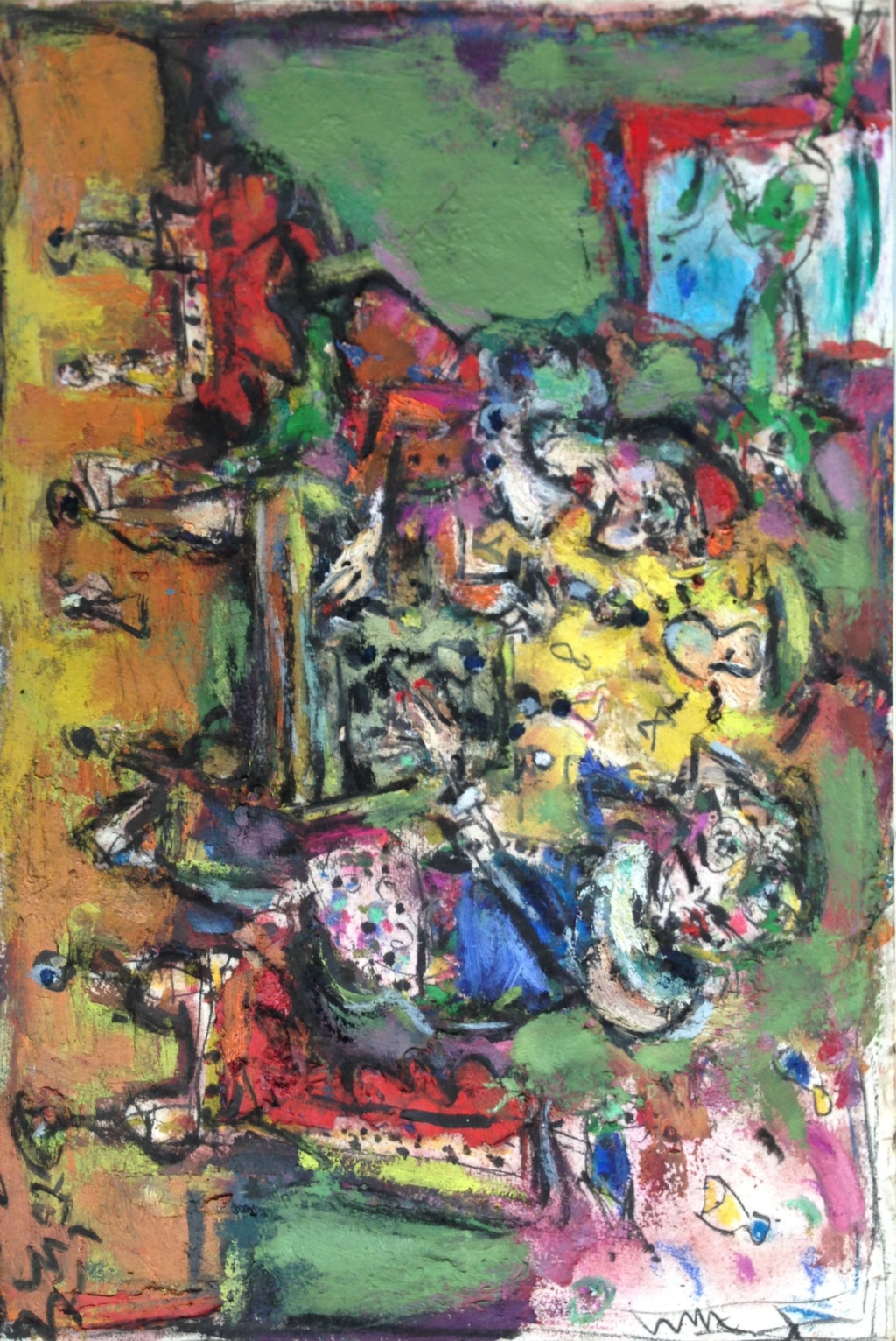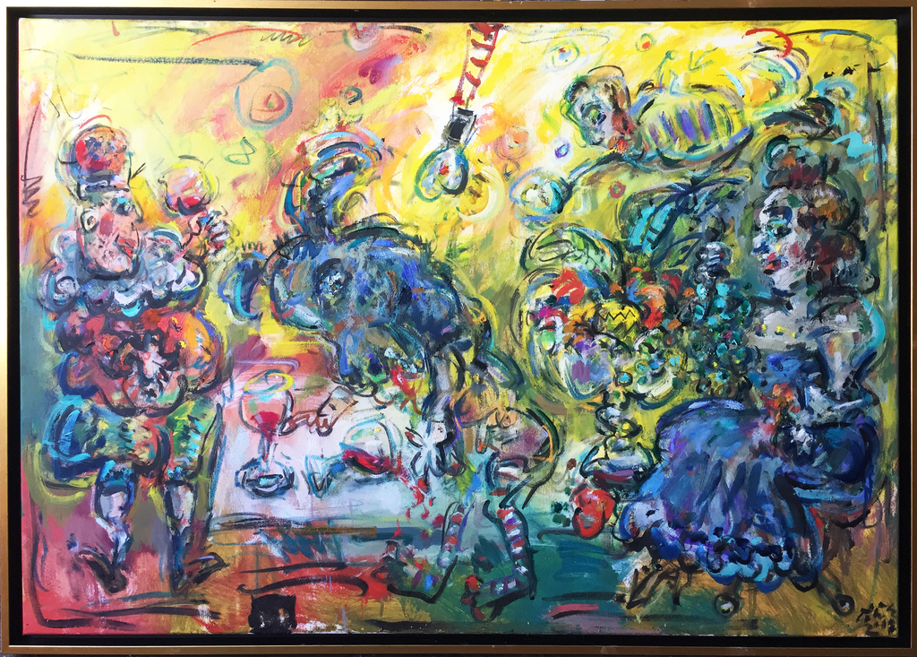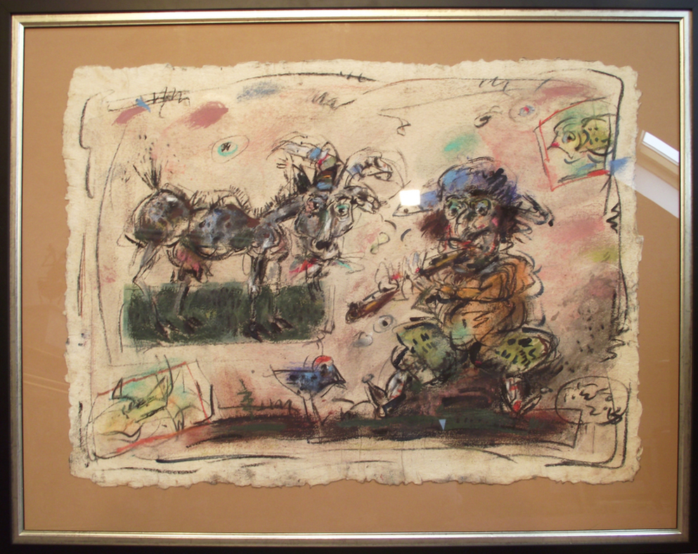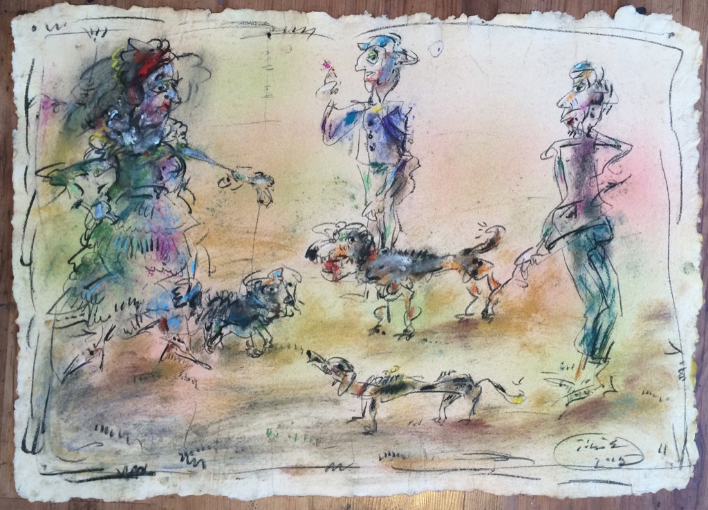Tóth Ernő érdekes kunkort tett meg a művészeti ágak dzsungelében. A képzőművészeti gimnáziumban szobrász szakos volt, a főiskolán festészetet tanult a Szőnyi István-i hagyományokat folytató Iván Szilárdnál, majd hosszú éveken át díszletszobrászként dolgozott az Operaházban, s nagy, festői foltokra alapozott lírai jeleneteket festett, míg az utóbbi 5-10 évben festményein is a rajznál kötött ki és bronzszobrait is térbeli rajzoknak tekinti. Pedig egy ide is elhozott festménye, a kiállítás indítóképe, a Bohóc kaméleonnal, 1991-ből azt mutatja, hogy a kolorithoz, a gesztusokhoz, a nagyformához és a heroikusabb fogalmazásmódhoz is van érzéke. Gyermeki stílusban megfogalmazott, mégis erőt sugárzó monumentális, szinte mitikus tűzben égő bohócának hatalmas keze kreatív erőt áraszt, látomásszerűen nyúl a mindig színét változtató kaméleon felé, Blake asszociációkat keltve és a COBRA csoport, például Karel Appel erőteljes, már-már erőszakos festőiségét idézve. Ennek ellenére Tóth Ernő az elmúlt 15 évben a grafikus jelleg, sőt - a modernizmusban lenézett, majd a posztmodernben újra felértékelt - karikatúra, narratívitás és groteszk humor mellett döntött. Az ezernyi apró lény és részlet perpetuum mobiléjában nyilván saját vibráló, izgága személyisége - egyfajta horror vacui érzése - is motiválta. De talán atomjaira széteső, kisstílű, önző és erőszakosan nyomuló korunk is sarkallta abban, hogy vásznait és merített papírlapjait az összes emberi hibát mértéktelenség, hazugság, gőg, ostobaság, nagyzolás, képmutatás, hajbókolás teljes erőbedobással elkövető, de humorban és szeretetben megfürdetett figuráinak folyamatos nyüzsgésével borítsa be. Szemléletét alapvetően meghatározza a színház és a cirkusz, minden alkotása egy-egy commedia delarte jelenet, parabola, fabula. Művein, mint egy nagy mesegyűjteményben vagy kertben visszatérő figurák, főleg bohócok, krampuszok, don-quijoték, münchausenek, széphölgyek és megszemélyesített állatok tűnnek fel, sétálnak és szerepelnek színről-színre, az emberi balgaságot megjelenítve. Festményeinek főszereplője a csíkos ruhás bohóc, akinek csetlő-botló alakjában talán nem túlzás némi önarcképi jelleget feltételezni. Ez az önirónia is jelzi, hogy Tóth Ernő - a groteszk szemléletben és a maszkhasználatban előfutárának számító, de az emberiséggel szemben megvető James Ensorral ellentétben - nem bánik kajánul ábrázoltjaival, nem ítélkezik fölöttük, megértő szeretettel jeleníti meg olykor értelmetlen vagy kifogásolható cselekedeteiket. Világosan látja, hogy egyáltalán nem tanulunk mások kárából, még a magunkéból sem, s az is egyértelmű, hogy mindannyian oda vagyunk egy kicsit kozmálva - ahogy Hamvas Béla mondta. Tóth a legabszurdabb tettből is vidám karneváli, báli jelenetet, szüreti mulatságot formál. Visszatérő képtémája az emberi nagyra törést kifigurázó Brémai muzsikusok, amelyet - a kiállítás címéhez híven festményben és szoborban is élvezhetünk. Az állatok gúlája csak nagy nehezen áll össze, egyik oldalról egy bohóc szalmával csalogatja, míg hátulról egy másik a hátsó felét tolja a csökönyös szamárnak, s a girhes macska is csak az utolsó pillanatban ugrik be a helyére. Az alakzat létrejötte nem is az ügyetlen ember akaratának, hanem a hegedülő kecske varázsénekének köszönhető. A többször visszatérő motívum mintha csak a Tóth Ernő-i formavilágot befolyásoló Marc Chagall hegedűs alakjainak karikatúrája lenne. Az előtérben, a porondmester figurájában Danny de Vitora ismerhetünk, aki Tim Burton Big Fish című filmjéből érkezett a képbe, s a szív alakú lábbal kötélen lengő, zsonglőrködő bohócokat körülvevő jelenésszerű, vidám buborékok is a filmből származnak. Egy sor más művét inspirálták filmek és zeneművek, nyilván a legfontosabb közülük Fellini Bohócokja, amely a Tóth Ernő ikonográfiájában központi szerepet betöltő bohóc figurát befolyásolta. Érdekes, hogy Tóth igrice nem kötődik pontosan a commedia delarte-ban vagy a cirkuszban megszokott típusokhoz, tulajdonképpen a fehérarcú rászedett Pierott és csak kicsit gonosz, az ördög szerepét eljátszó, feketearcú Scarpino figuráját támogató, színes ruhájú Harlekin alakjainak vonásait ötvözi. Rászedő, de még inkább rászedett hősszerelmes egyszerre. Ilyen átejtett figurákként jelennek meg a fogyasztói társadalom pusztító étvágyát karikírozó Ki bír többet? című kép egymással gombócevő versenyt vívó, megkettőzött, majd szétpukkadó bohócpárjában. Megáll az eszem, csak eszem, csak eszem - énekelte fe Lugossy Laca a Bizottság együttesben, de az Indul a bakterház zabálói is felvillannak a tarka mű hátterében. Az újdonságot a nagyon is aktuális tartalom jelenti. Nem is annyira a manipulált fogyasztók mohósága, mint inkább a mögöttük álló, őket hergelő és manipuláló, sutyorgó-vigyorgó kibicek - a tőkét kiszolgáló média és PR sunyisága és aljassága kelt bennünk viszolygást. A természetet, a környezetet kizsigerelő konzumidiotizmus veszélyeire Tóth hasonlóképpen játékos, humoros formában hívja fel a figyelmünket, a Kérsz egy pohár vizet? című festményen, melyen egy akváriumba zárt aranyhalnak vizet vivő bohóc tűnik fel. A művészet természetesen sosem csak a témát hordozó üzenet, hanem a művészi eszközökkel való játék is. Bár Tóth Ernő a rajzra helyezi a hangsúlyt munkáiban, itt szeretnék rámutatni arra az akvárium vizének felületén úszkáló Czóbel Bélát, Jean Dubuffet-t és Karel Appelt is megidéző festői reflexre, amely azt mutatja, hogy a grafikai nyelvben önmagát szűk területre korlátozó Tóth hogy