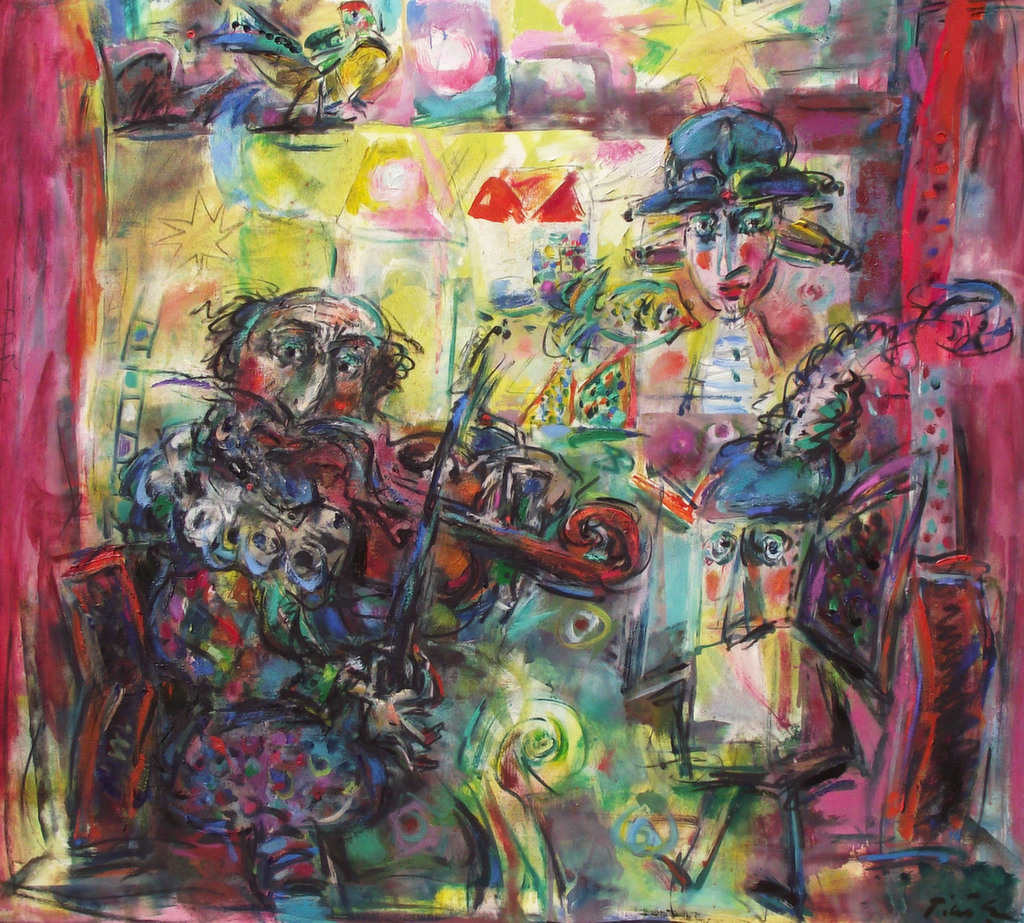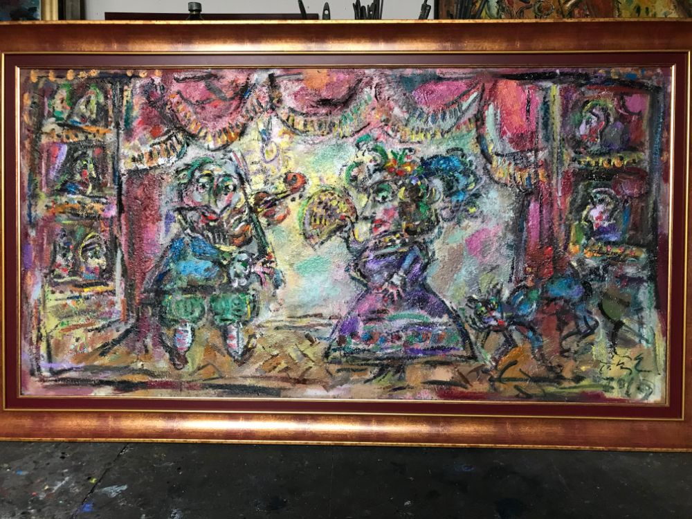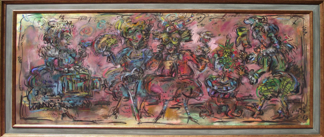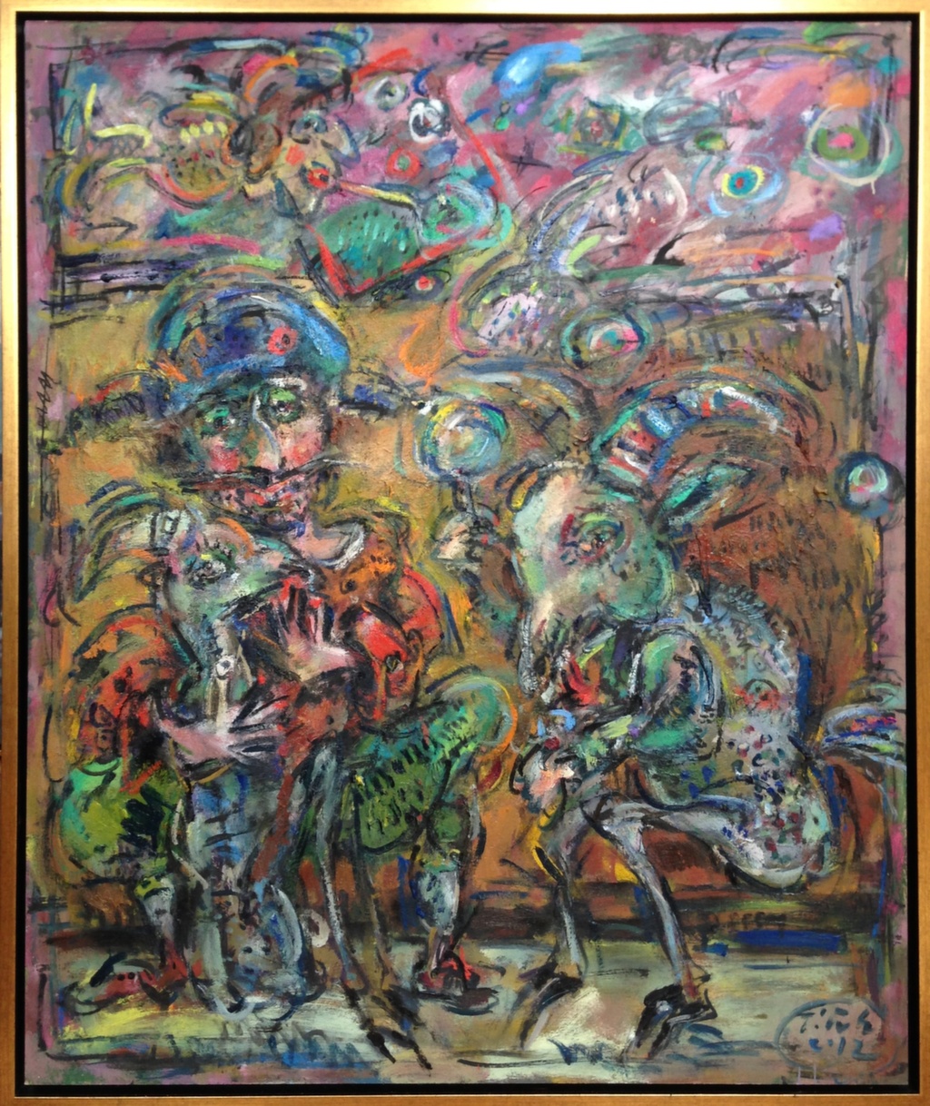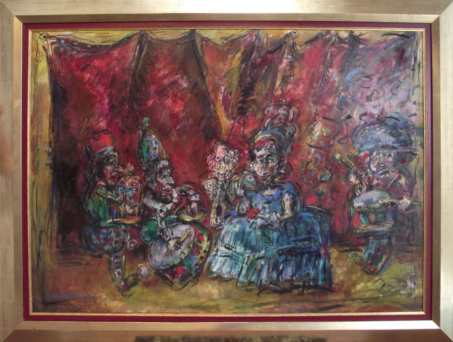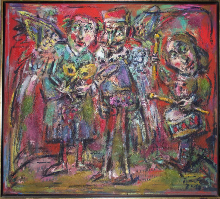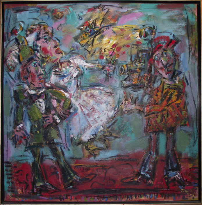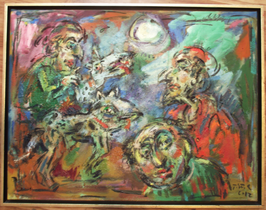 - Hoppla! - kiált az idomár és örök kérdés marad, hogy a következő pillanatban a bohóc vagy a szelíd nagymacska veti-e át magát a karikán. Mert csupa meglepetésekkel teli ez a világ, és észre sem vesszük, már együtt is játszunk a művésszel. Ám ez a tevékenység nagyon is komoly dolog, ahogyan csak a gyerekek képesek együtt játszani. Nem kell hát röstelkednünk miatta, nem váltunk infantilissá általa, csak a mindannyiunkban megbúvó egykori gyermeket csalogatta elő a művész, és e játék során információt gyűjthetünk önmagunk olyan rejtett értékeiről is, amelyeket meg kellene őriznünk józan mindennapjainkban is, miközben beöltözködünk a képeken látható jelmezekbe, magunkra öltve a különböző szerepeket. Ezeket előttünk már mind fölpróbálta Tóth Ernő, aki alapvetően romantikus, alapvetően szemérmes művész, amolyan próteuszi rejtekező, aki hol Don Juanként, hol Don Quijoteként, hol szomorú Pierrotként bukkan fel képein, mert miként az irodalomban létezik alanyi költő, úgy mondhatjuk Tóth Ernőről is, hogy alanyi festő, aki kissé groteszkül szemléli a világot, de sohasem csúfondárosan. Az ő hősei, akiknek a szerepébe gyakran maga bújik sohasem agresszívek, nem provokálnak, de nem is szánandók, csupán esendők, felkeltik szimpátiánkat, még ha meg is mosolyogjuk őket, de nem igénylik együttérzésünket. Szívesen társalgunk velük - hogy képek esetében ezt az antinómiát használjam, különösen, ha olyan szemet gyönyörködtető színes világban jelennek meg, mint ezeken a képeken.
