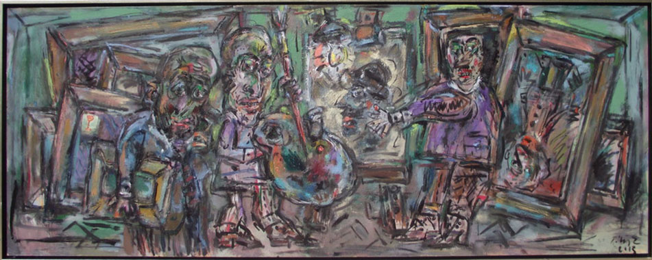 A képzőművészet, bár ha igazán az, nem létezhet ideológia nélkül, alapvetően mégsem filozófia, nem fogalmi gondolkodás, hanem színekben, formákban megjelenő szellemiség. Tóth Ernő imaginárius térben megjelenő szereplői is egy festői képi világ elemei. Akkor hathatnak valóban, ha festőileg meggyőző módon jelennek meg, ha a látvány színekben, formákban összehangolt, és élményt adó. Tóth Ernő festőisége a szigorú szakma szabályok szerint is meggyőző, épp ezért időzhettünk el hosszabban a képek, ha úgy tetszik irodalmi mondandójánál. A festék nem anyagszerűségével kérkedik ezeken a képeken, hanem különböző színhangok megjelenítője, a kompozíciók szerkezete nem önmagát mutogatja tolakodó módon, hanem a formák képi rendjét szolgálja, és a formák, a foltok, a vonalak is csupán kifejező eszközök, amelyeket miként a jelen esetben is - ha perfekt módon alakamaz a festő, önmagukat megszüntetve átlényegülnek a szellemi tartalom hordozóivá.