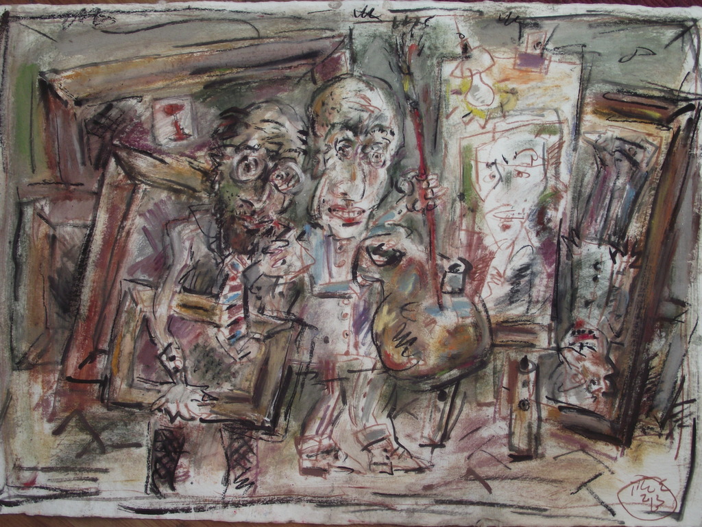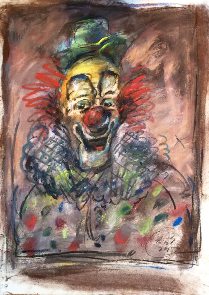 Visszatérve bohócpárosunkhoz, arra is választ ad, hogy miért ilyen könnyen rászedhetőek a mi kedves kópéink. Sakkozó bohócokat ábrázoló képén szellemi korlátoltságukat jeleníti meg; egyikőjük szűklátókörűségét, rövidlátását a közelről bámult sakkfigura jelzi, másikuk Don Quijotés külsejű, Micimackó mozdulatával töri a fejét. Az ilyen fickókat valóban könnyű átvágni! Az egyszerre időszerű és örök emberi tulajdonságok mellett a bohóc kiváló alany arra, hogy Tóth a művészettörténet nagyjainak toposzaival is eljátsszon, egy lírai, jóval melankolikusabb, már-már drámai hangon. Erre mutat szép példát a Tékozló fiú, melynek apafigurájában könnyen felismerhető Rembrandt alakja, kicsit Picasso öregkori bohóckirályaival összekapcsolva. A tékozló fiú természetesen bohóc, s mivel az atya festő, a megtérőben talán jogosan látunk egy rejtett önarcképet. A sápadtfényű Nap alatt létra jelenik meg, a transzcendencia, a lelki megtisztulás utáni vágyat szimbolizálva. A háttérben leselkedő alak a már megszokott manipulátor, méregkeverő egyik variánsa.