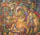 Már Tóth Ernő sem a régi. Belátom, ez egy öregedő focista esetében nem túl hízelgő megállapítás. De ha jobban belegondolunk, evidens, hogy ami nem a régi, az új. Erre a tóthernői újra, újdonságra szeretném fölhívni szíves figyelmüket. Jól ismert vidám, csúfondáros, harsogó színekben tobzódó groteszk világára mintha hatott volna a jelen kissé szorongó, szorongató hangulata. Mintha megrendült volna képeinek életigenlő, diadalmas filozófiája: hogy minden lehetséges. Eddig képeit - ha van ilyen - az intenzív határtalanság jellemezte, dúsan tenyésző kertjeinek, terített asztalainak, világot jelentő deszkáinak vagy éppen cirkuszi porondjainak csak a vászon nagysága vagy képkeret - nem a képzelet! - szabott határt. Most már egyes munkáin megjelenik egy szomorúbb, bizonytalanabb életérzés, mely nem mondom, hogy közvetlenül a ránk boruló általános gazdasági, erkölcsi és értékválsággal függ össze, de azt sem állítanám, hogy semmi köze hozzá. Nemrégiben az Erdős Renée Házban a Magyar Művészeti Műhely csoportos kiállításán fölfigyeltem egy szoborcsoportra. Látszólag olyan volt, mint a Tóth Ernő szobrok többsége, piszkafa testek groteszk pózokban, a testfelületek göcsörtösek, melyek izmok is lehetnek, de mondhatjuk azt is, hogy a szobrász kezének és az öntvény akaratának találkozása a boncasztalon - hogy egy klasszikus képzavarral fejezzem ki magam.